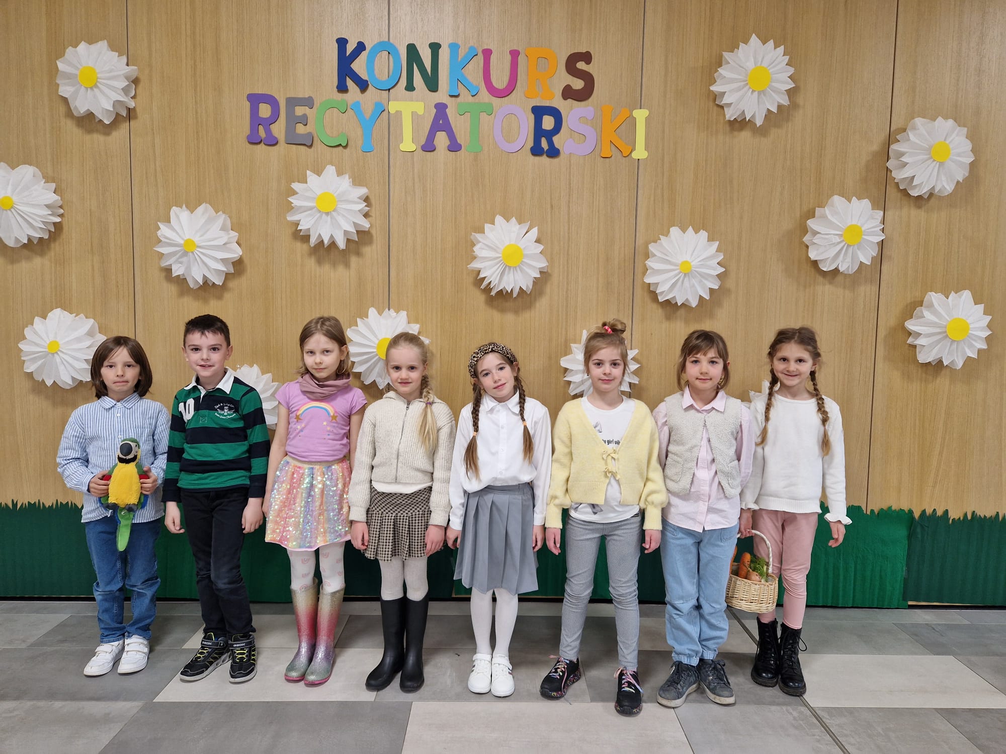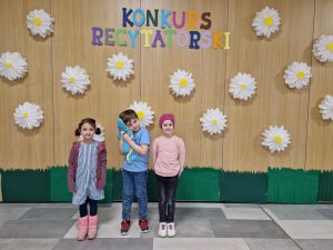 W konkursie wzięli udział uczniowie oddziałów dziecięcych oraz klas 1-3, którzy zaprezentowali utwory Jana Brzechwy, Juliana Tuwima i Marii Konopnickiej.