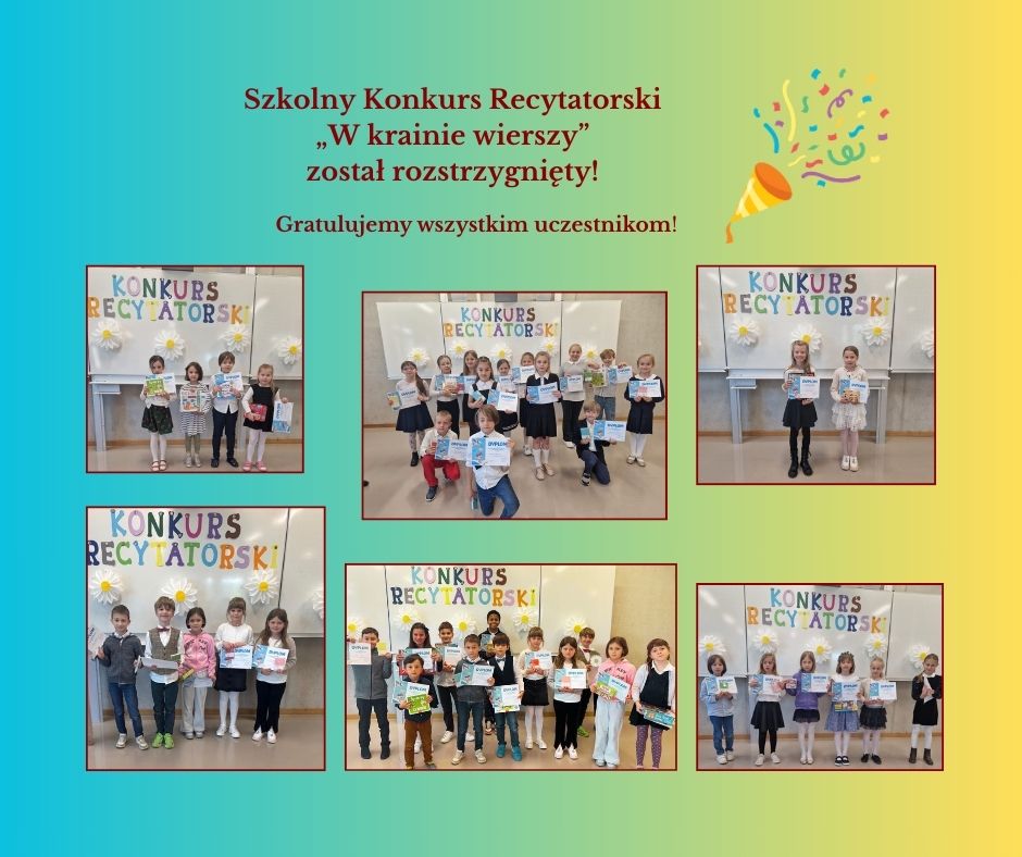 Z przyjemnością informujemy, że Szkolny Konkurs Recytatorski „W krainie wierszy” został rozstrzygnięty!