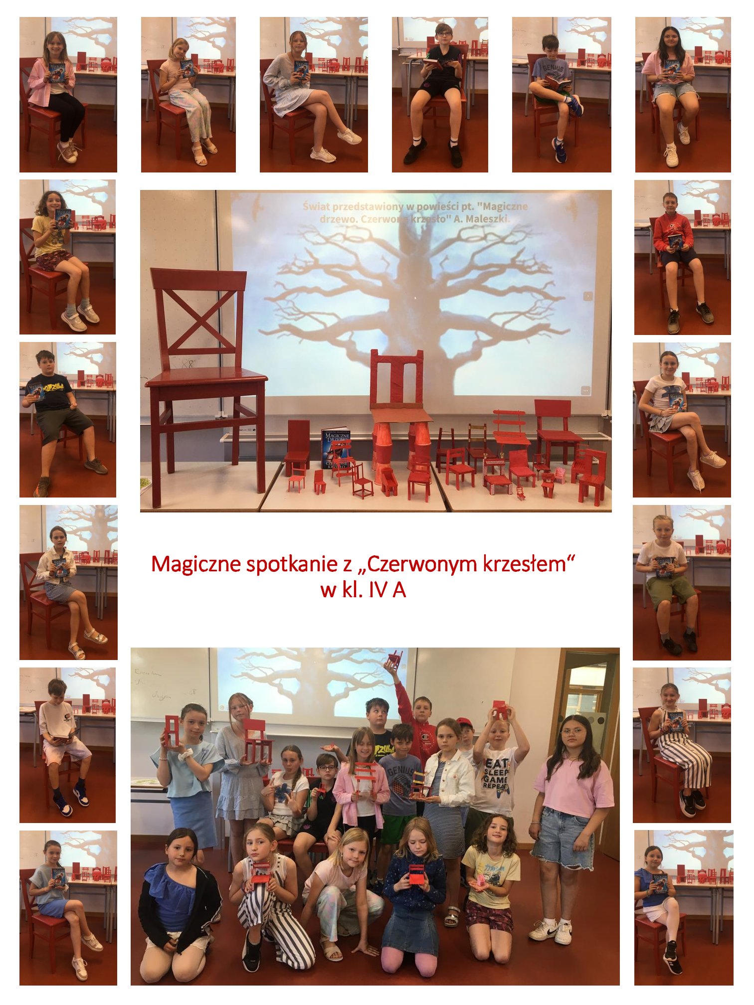 Praca miała związek z omawianą lekturą „Magiczne drzewo. Czerwone krzesło” Andrzeja Maleszki.